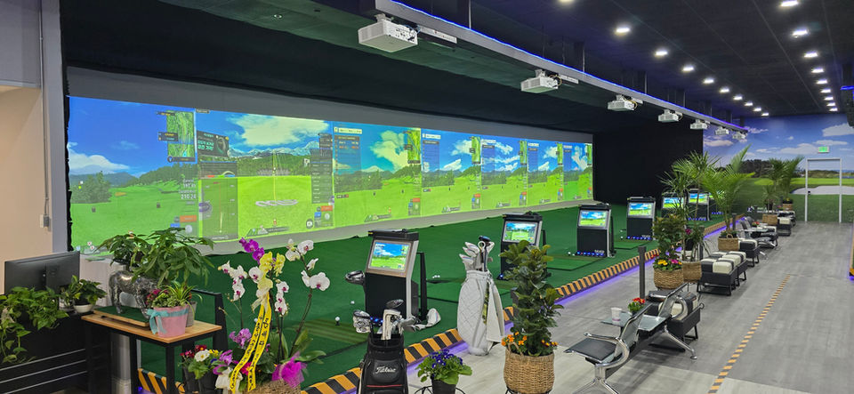 Premium indoor golf simulator powered by SMS SCREEN GOLF